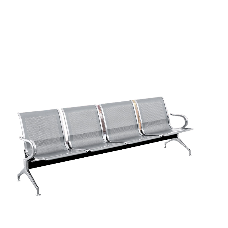 Chaises d'attente extérieures en acier inoxydable et en métal de style moderne à quatre places pour les espaces publics, les hôtels, les hôpitaux, les banques, les bureaux