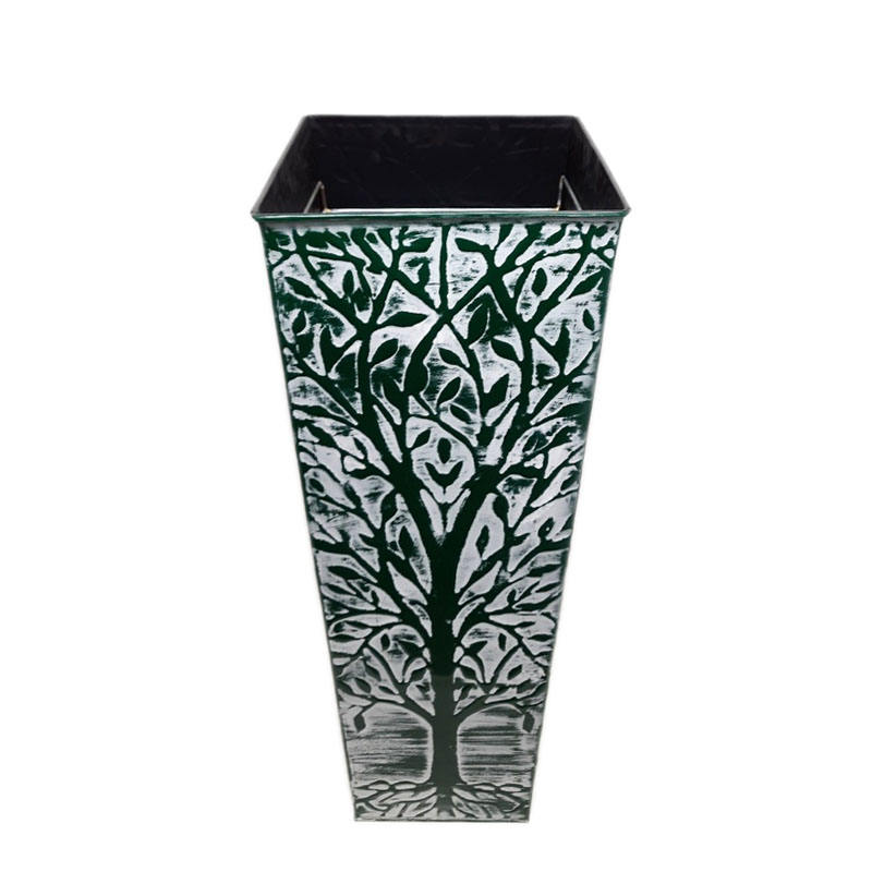Vase à fleurs rond en fer galvanisé de style moderne de couleur grise avec autocollant Fleurs artificielles faites à la main pour les décorations de mariage à la maison
