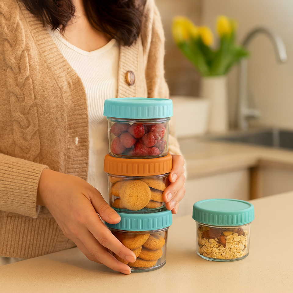 Bocaux de conservation alimentaire en verre de style moderne, compatibles micro-ondes, lave-vaisselle et congélateur, avec couvercle en plastique, 120 ml, carton durable, boîtes de cuisine