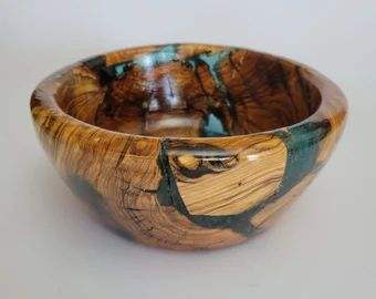 Bol en résine époxy et bois d'acacia fait main de style moderne, sans BPA, avec finition brillante pour une décoration intérieure haut de gamme