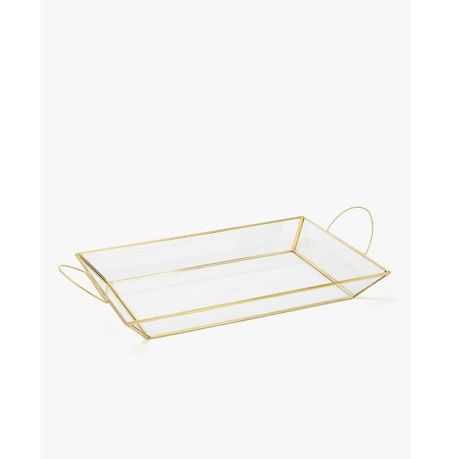 Modern Style Handmade Rectangular Serving Dish with Fancy Mirror Handles Luxury Rectangle Serving Platter New Designer Wholesale