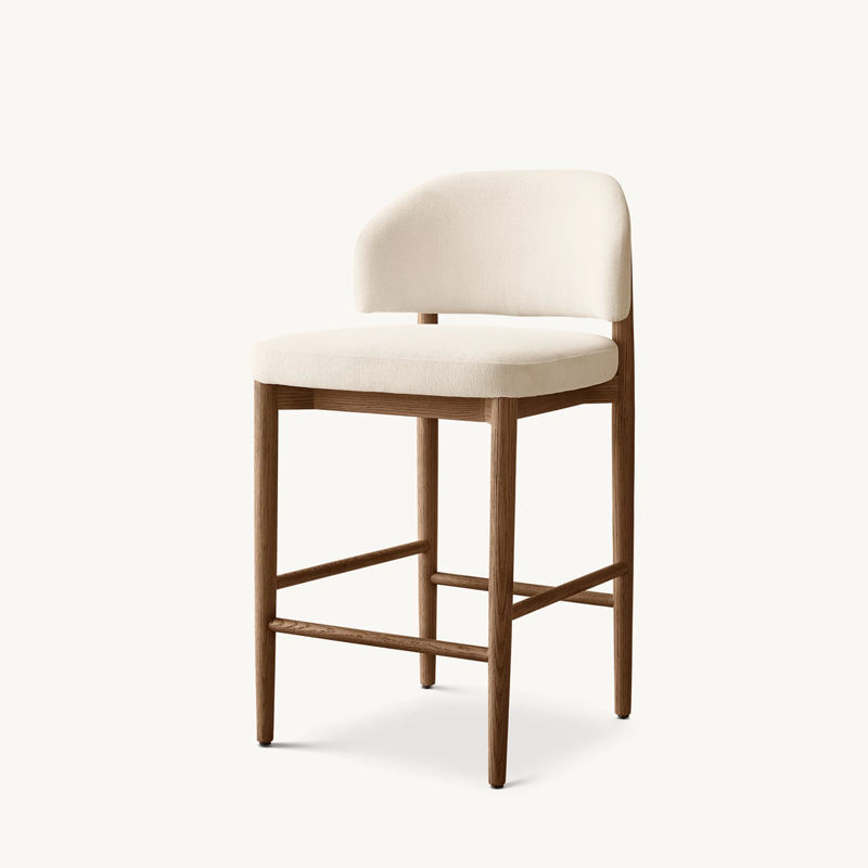 Tabouret de comptoir en bois de style moderne pour la cuisine villa club, design pour la restauration à usage commercial, comptoir de bar et chaise en tissu