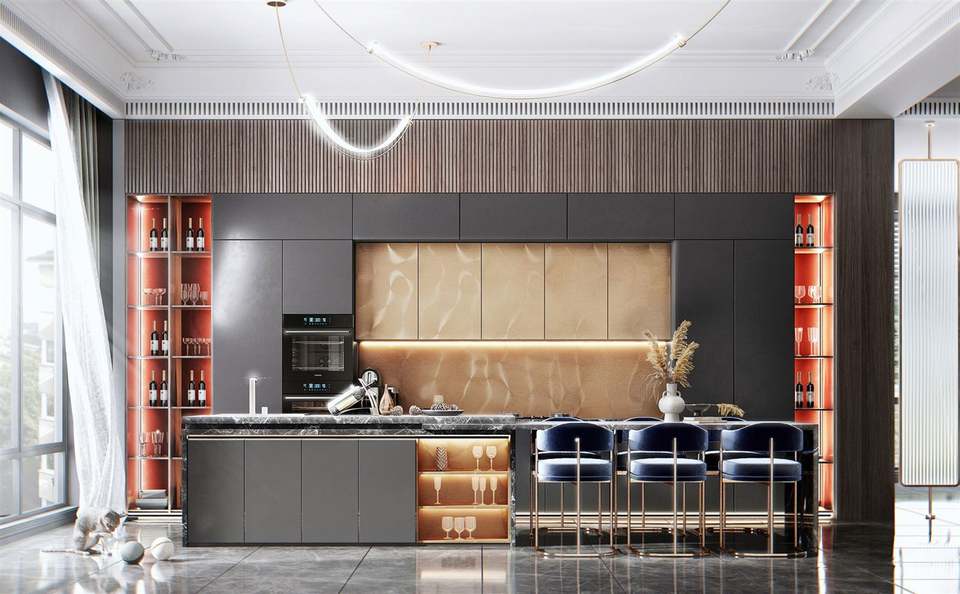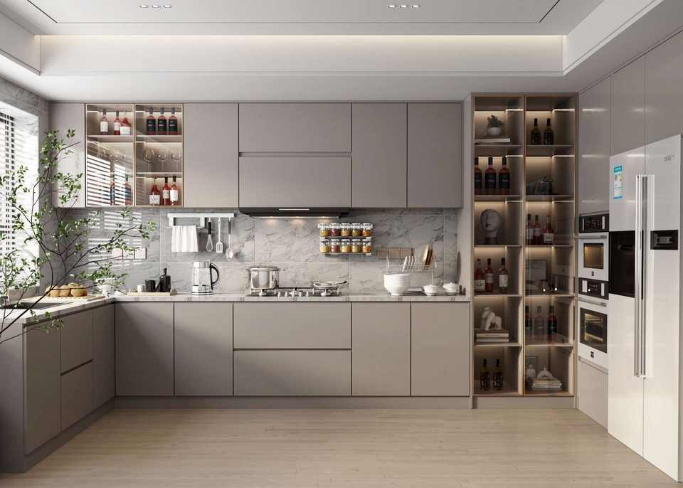 Armoires de cuisine de style moderne, personnalisation gratuite avec évier en acier et plan de travail en marbre, meilleur prix