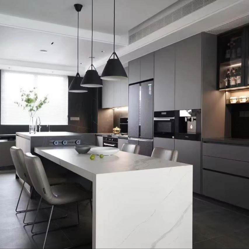 Armoires de cuisine modulaires combinables de style moderne, panneaux en contreplaqué, panneaux de particules, résistantes à l'eau, design écologique