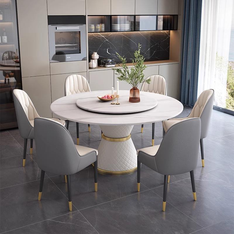Ensemble Table à Manger Circulaire de Luxe en Marbre Style Moderne avec Chaises, 4 6 8 Places, Meubles Blancs Rotatifs pour Restaurant, Designs en Gros