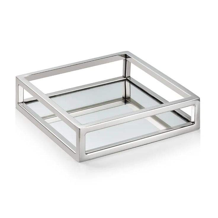 Plateau de service moderne en métal avec miroir en bas, idéal pour les mariages, la restauration, les desserts et les boissons