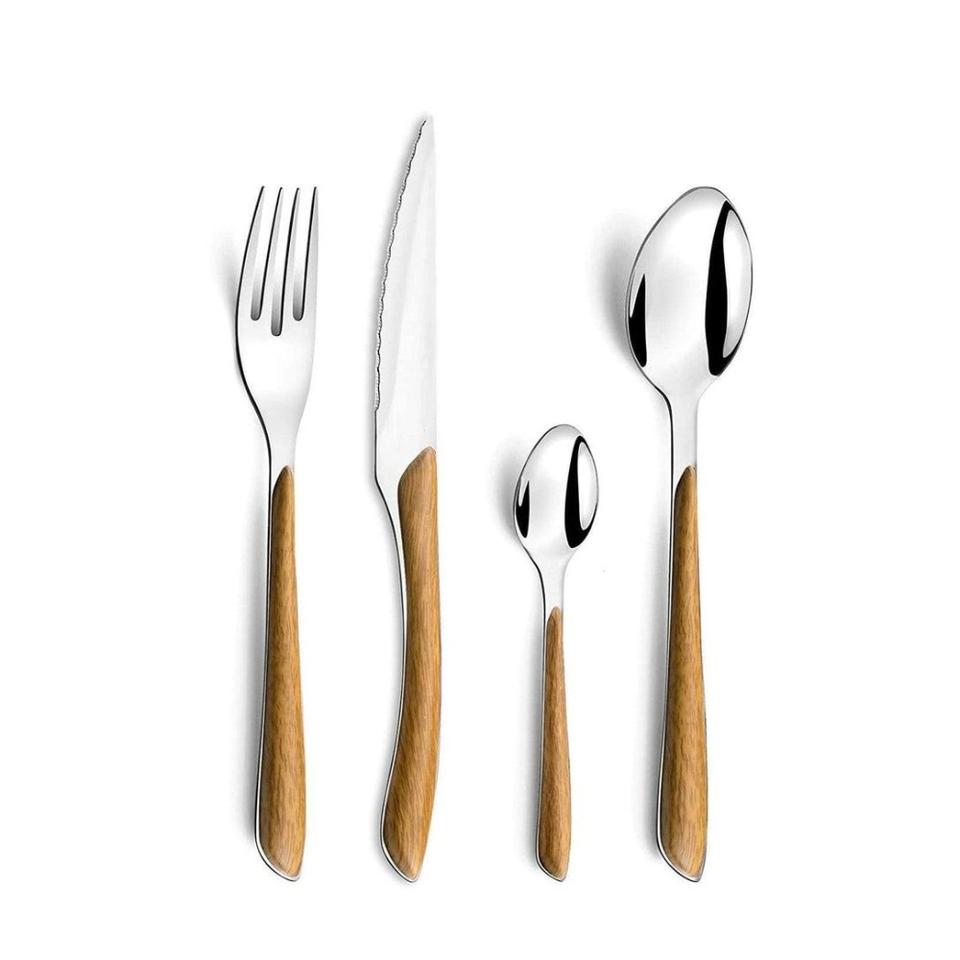 Ensemble de couverts en acier inoxydable poli miroir de style moderne avec manche en bois écologique pour accessoires de cuisine – Vente chaude