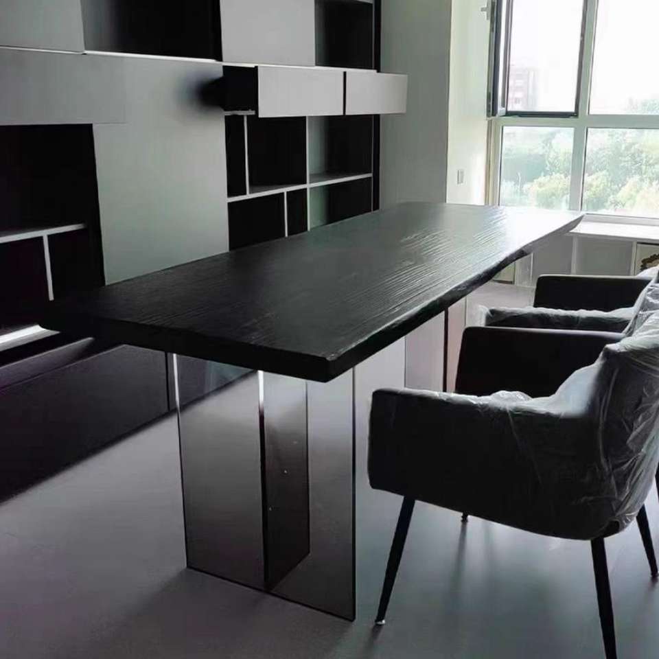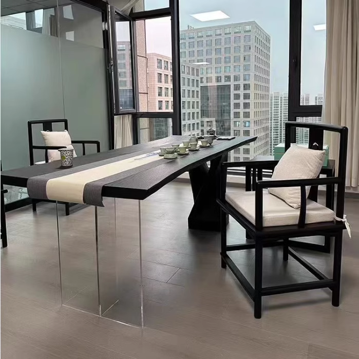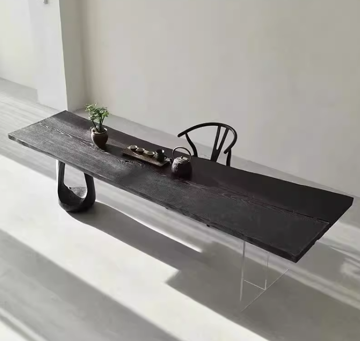 Style moderne nouvelle version Table à manger en bois de frêne suspendue au vent silencieux Salon en acrylique Bureau à grande planche Bureau en bois massif
