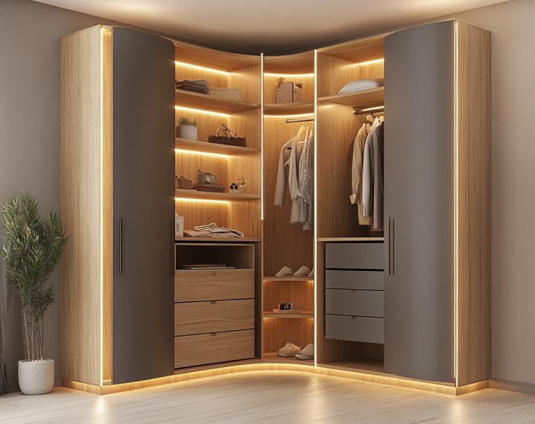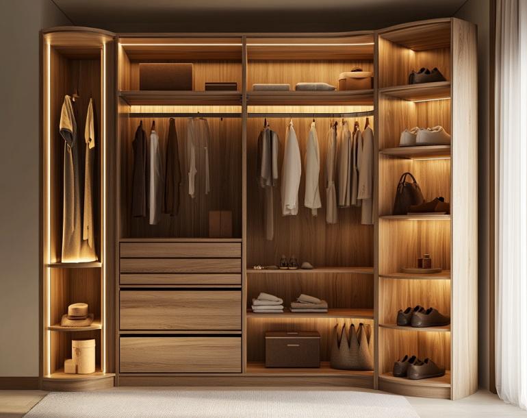 Armoire ouverte de style moderne avec tiroirs de boîte à bijoux au fini grain de bois