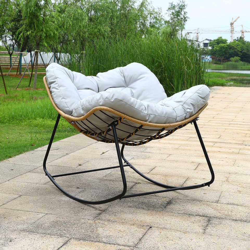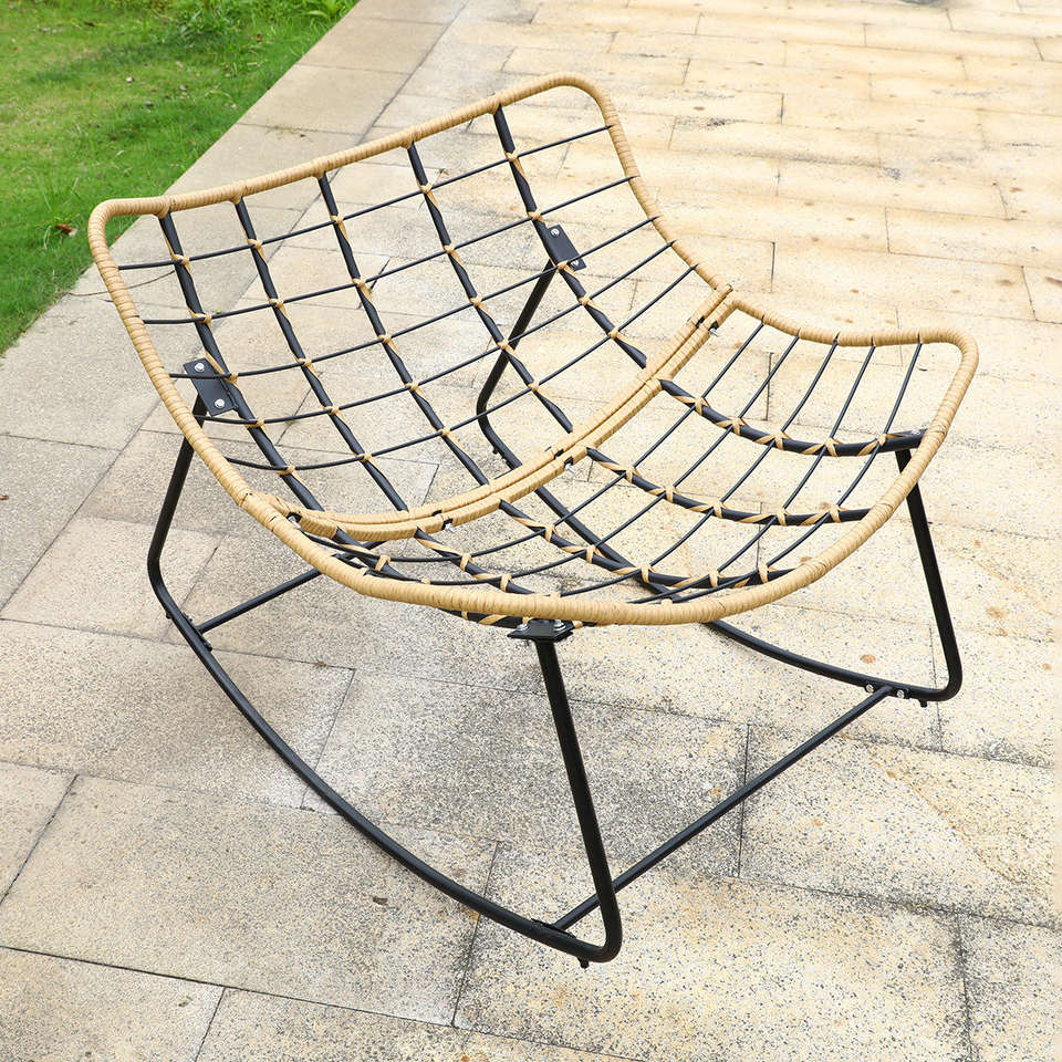Fauteuil à bascule d'extérieur de style moderne avec design en rotin pour utilisation dans les cours d'hôtel et les parcs