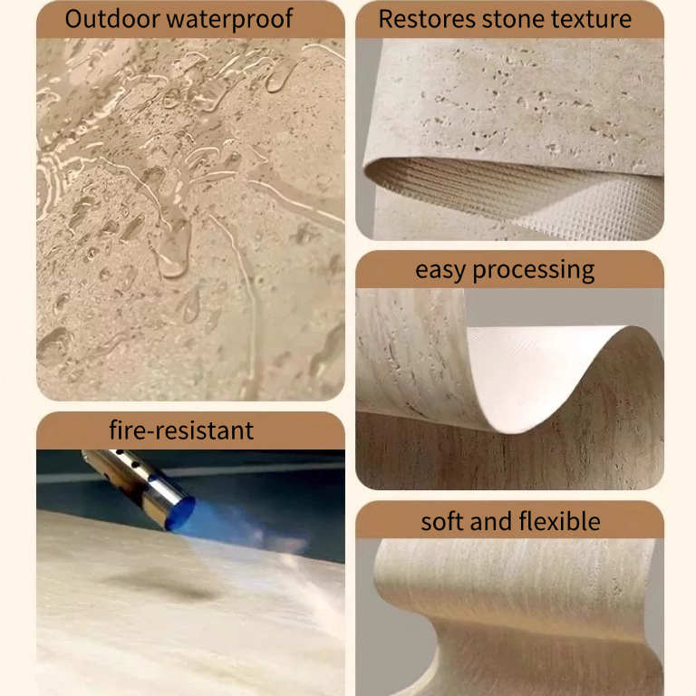 Carrelage souple en pierre de travertin romain de style moderne, façade flexible, mur de salle à manger intérieur et extérieur, pierre artificielle 3D