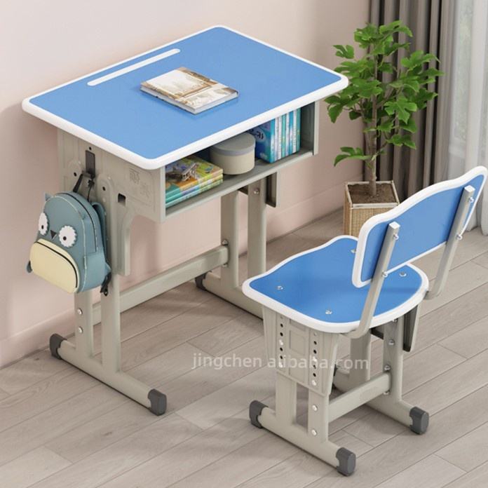 Jingyi Ensemble bureau et chaise scolaire, cadre acier, bois HD, bureau 60×40 cm, hauteurs bureau 64–76 cm, chaise 36–42 cm
