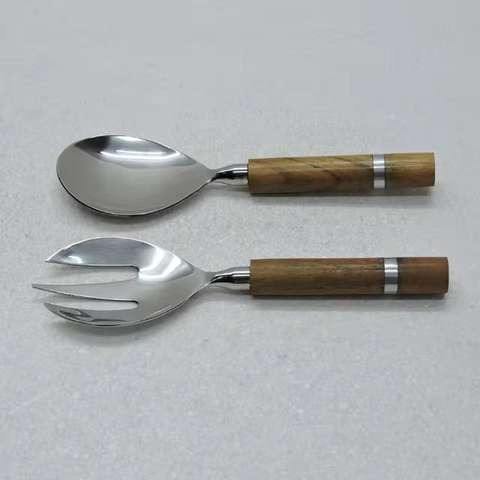 Outils de service de style moderne avec manche en bois Cuillère de service fourchette vintage personnalisée Ensemble d'essoreuse à salade Mélangeur Outils de cuisine