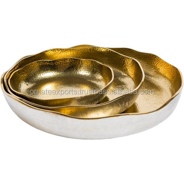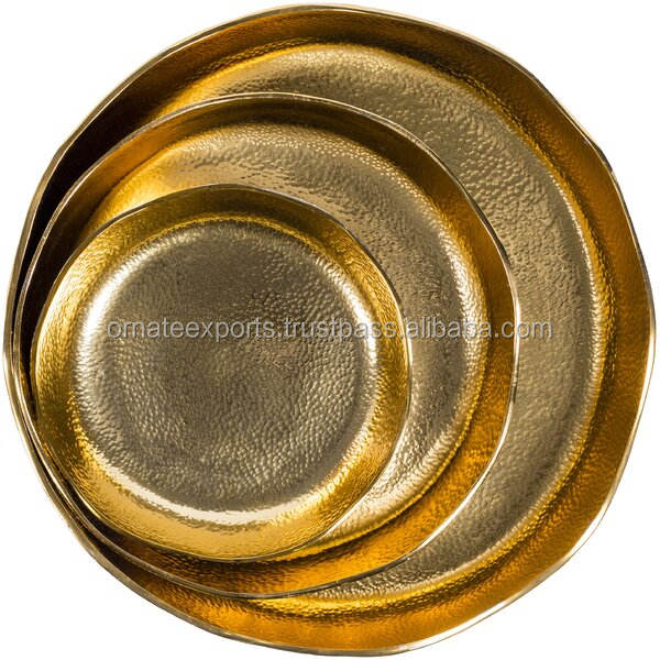 Ensemble de trois plateaux de service en métal or et nickel ornés de style moderne uniques pour exposer les fruits secs