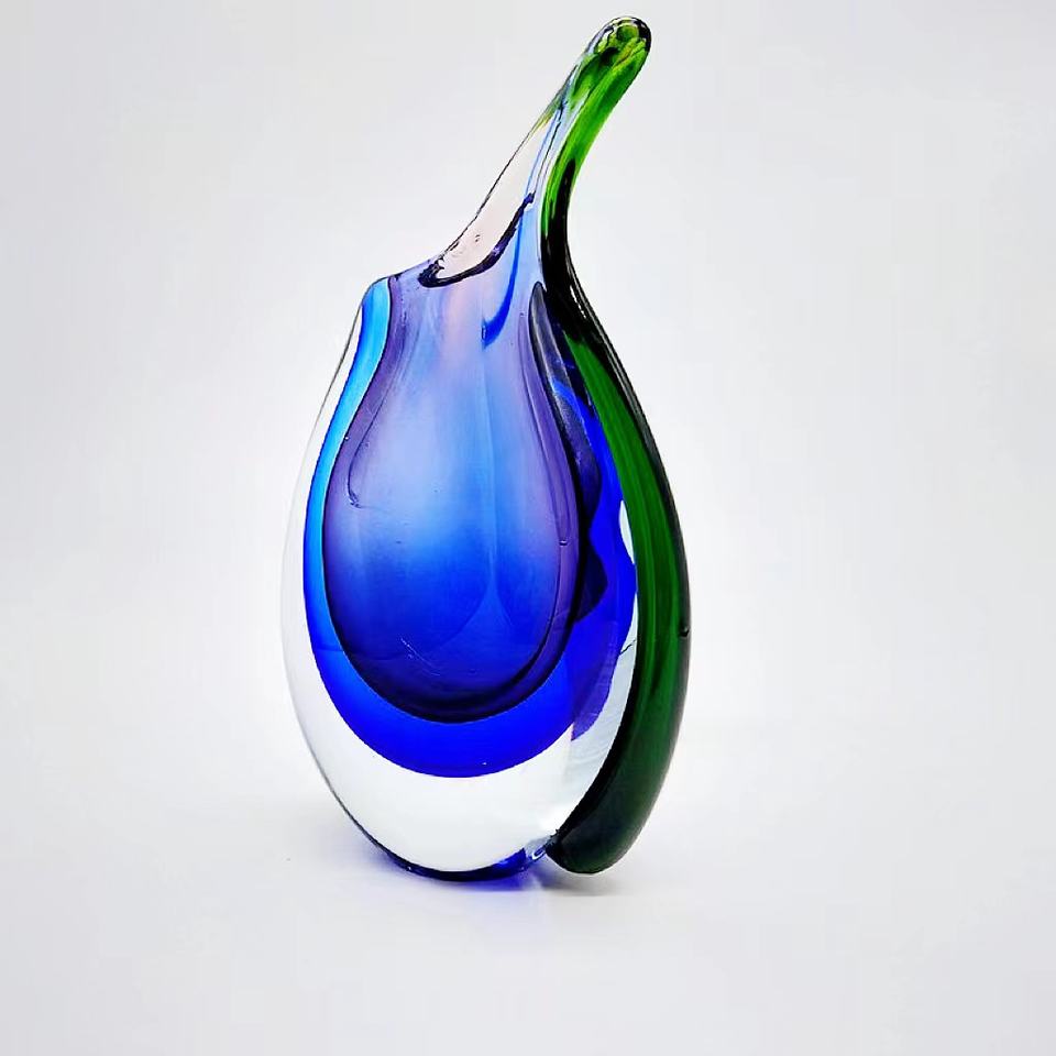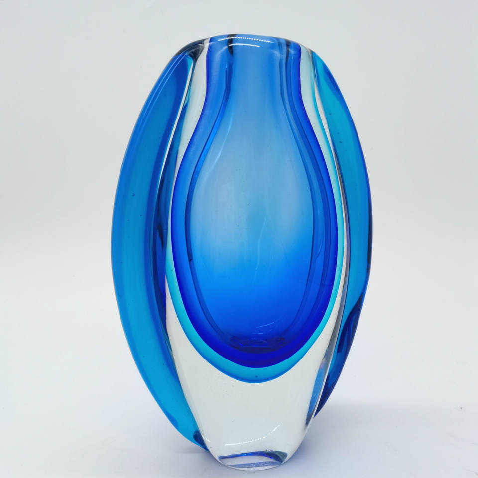 Nom du produit:Vase simple en verre d'art de Murano, soufflé à la main, double bleu, idéal pour offrir.