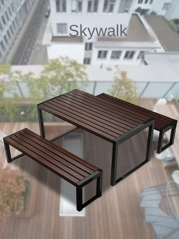 Chaise carrée en fer moderne pour parc de loisirs en plein air, cour, jardin, balcon, café, table et banc combinés