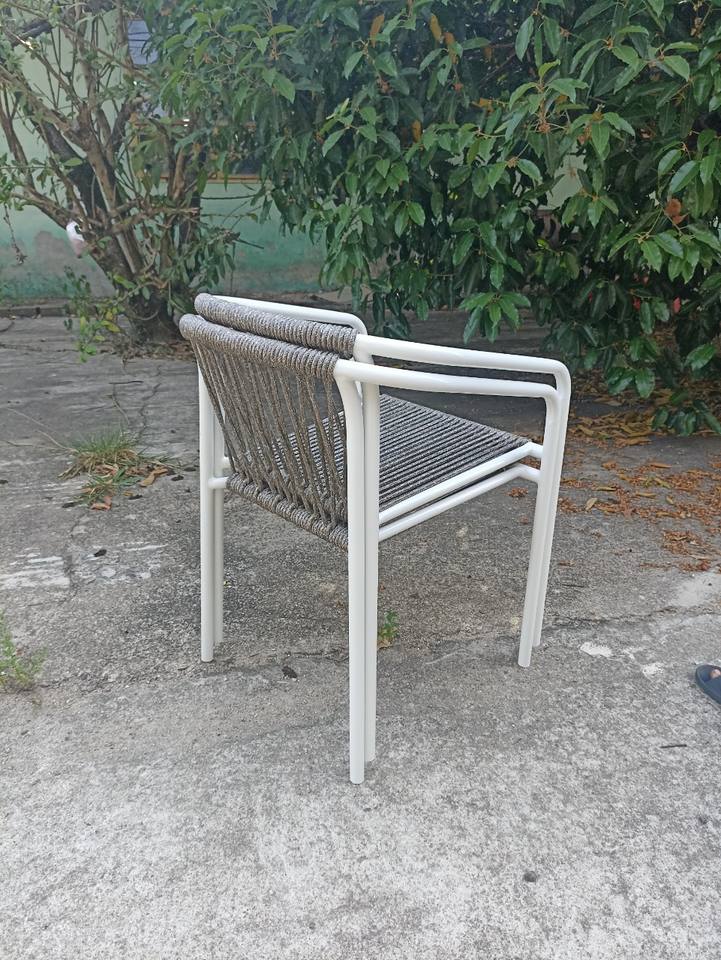 Chaise empilable de style moderne de l'usine vietnamienne Corde grise en métal blanc pour l'extérieur 1 pièce 1 r ModernSourcing.com de couleur blanche
