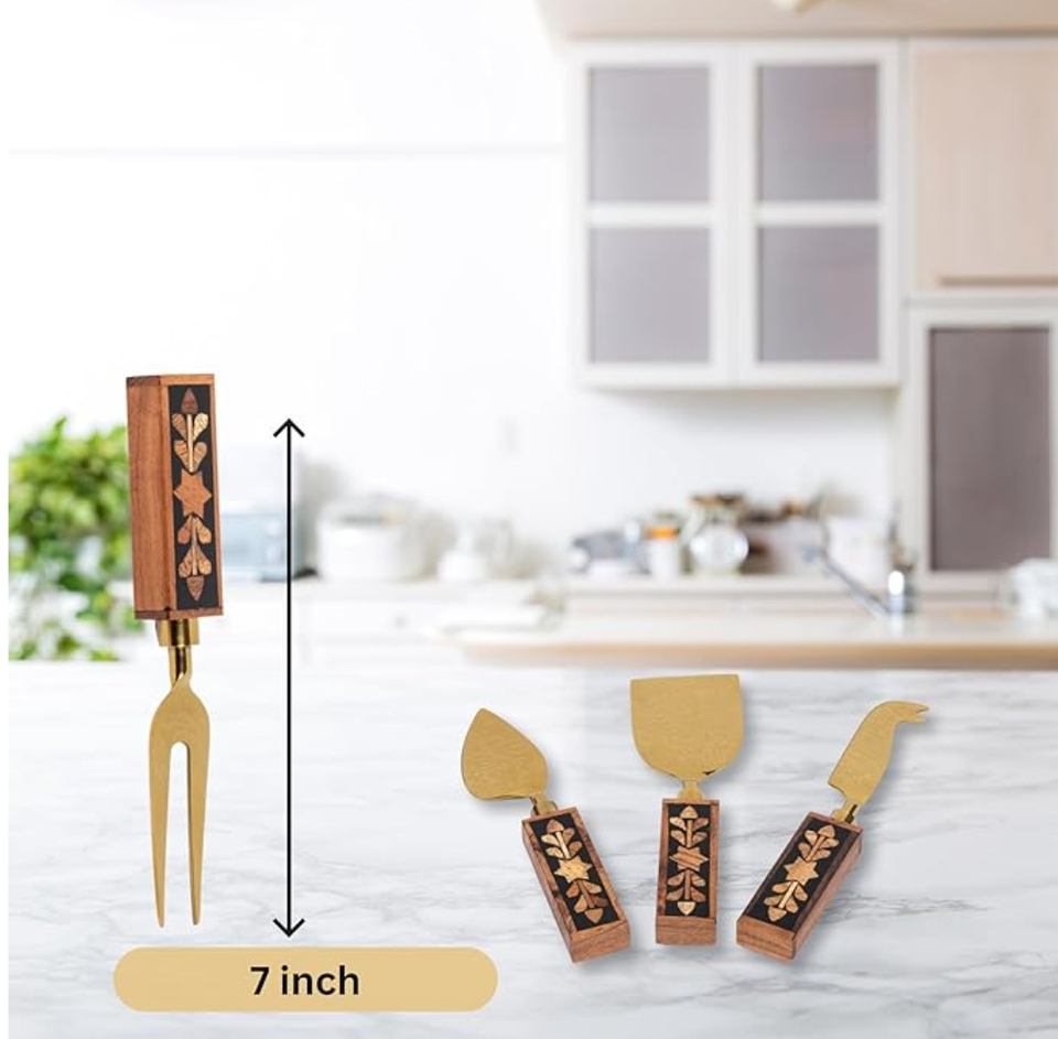 Ensemble de couverts en acier inoxydable de style moderne avec manche en bois Couverts en plaqué or les plus récents Planche à découper en résine époxy