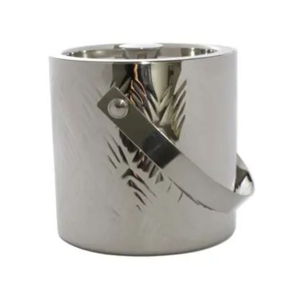 Seau à glace en acier inoxydable de style moderne, à double paroi isolée, pour champagne et vin, avec finition martelée brillante