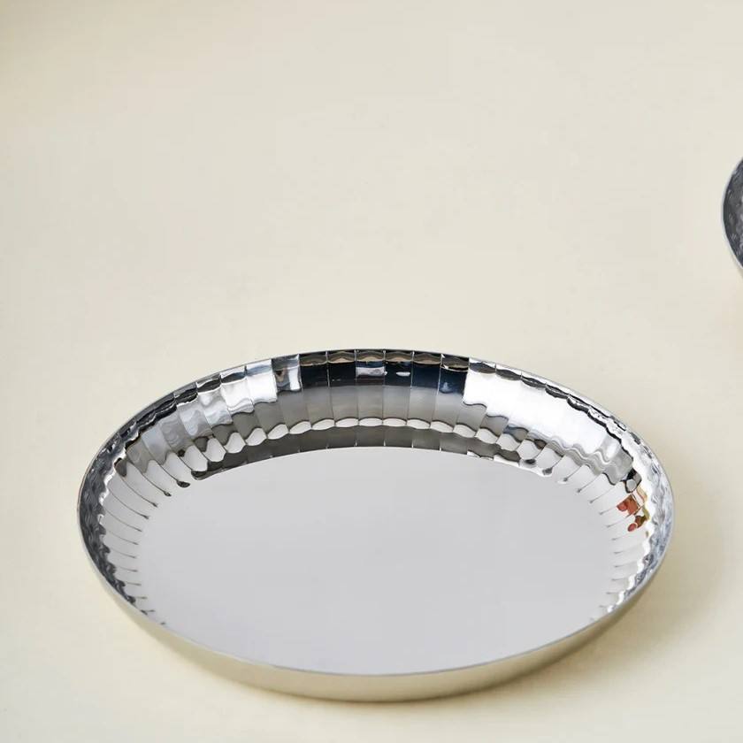Plateau de service moderne en acier inoxydable de luxe, de haute qualité, durable, personnalisable, artisanat en métal, fête, mariage - Vente en gros