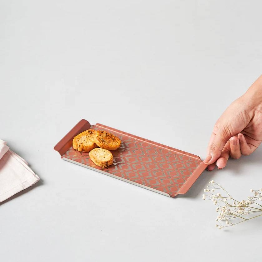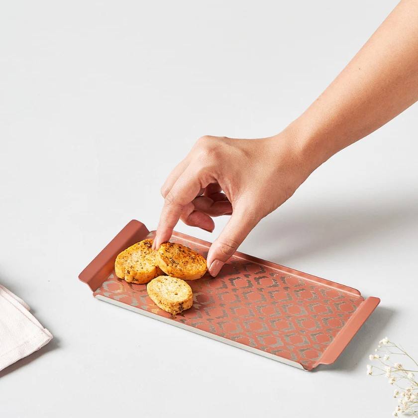 Plateau de service décoratif moderne en métal artisanal en acier inoxydable motif rustique taille personnalisable Logo utilisation pour fête de mariage haute