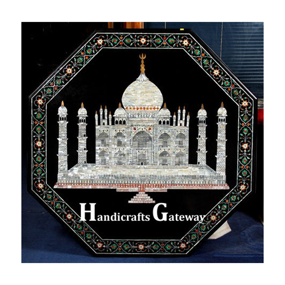 Table de salle à manger en marbre noir de forme octogonale de style moderne Tajmahal de luxe artisanal avec une incrustation exquise pour la maison