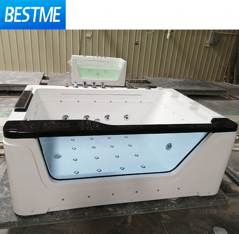 Baignoire à remous autoportante en verre trempé de luxe en acrylique blanc pour 2 personnes baignoires à accoudoirs de massage baignoires