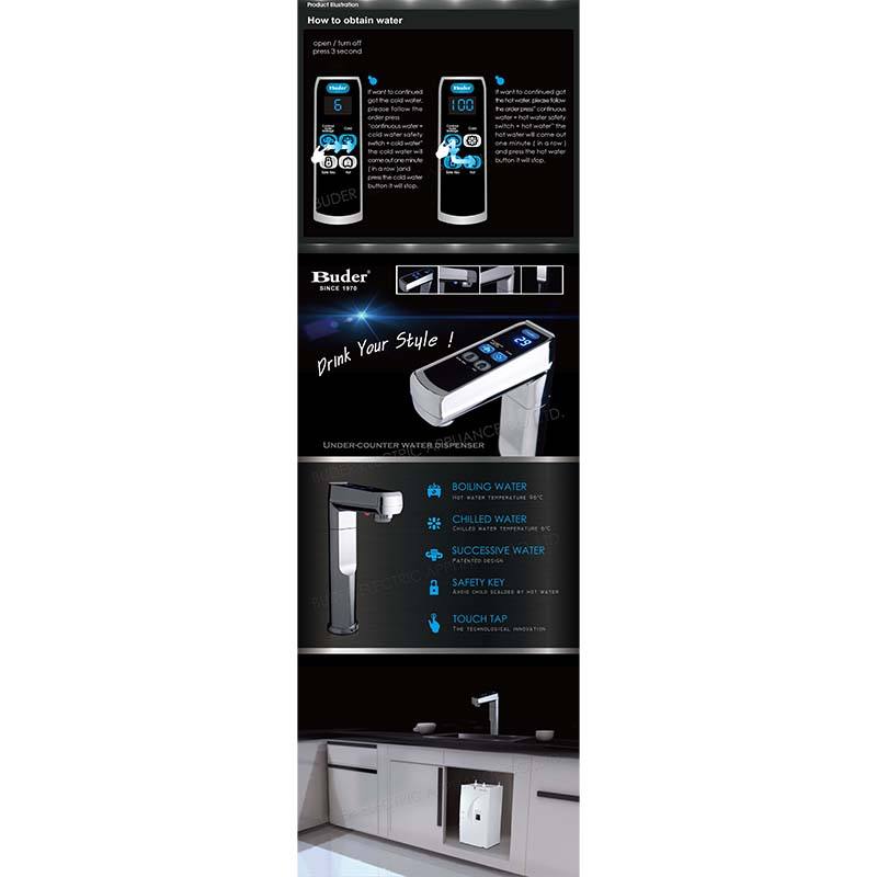Distributeur d'eau en acier inoxydable à écran tactile de style moderne avec fonctions chaudes et froides Installation sous le comptoir pour les hôtels