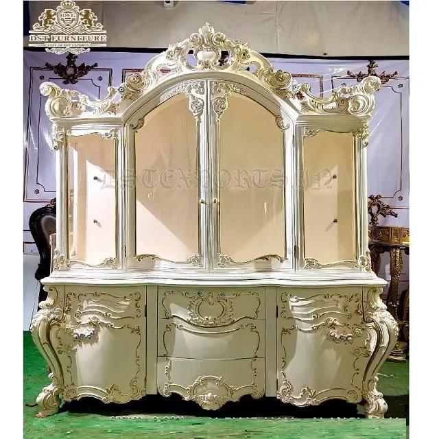Rococo Style White Gold Polished Crockery CabinetProduct name
