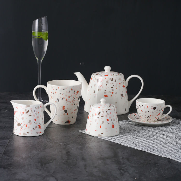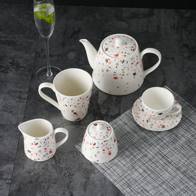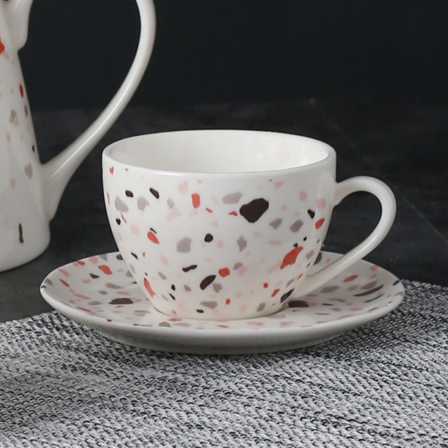 Style moderneTerazzo Passion Imprimé Logo personnalisé Tasse à café et soucoupe en céramique de chine osseuse Service à café thé expresso latte en porcelaine