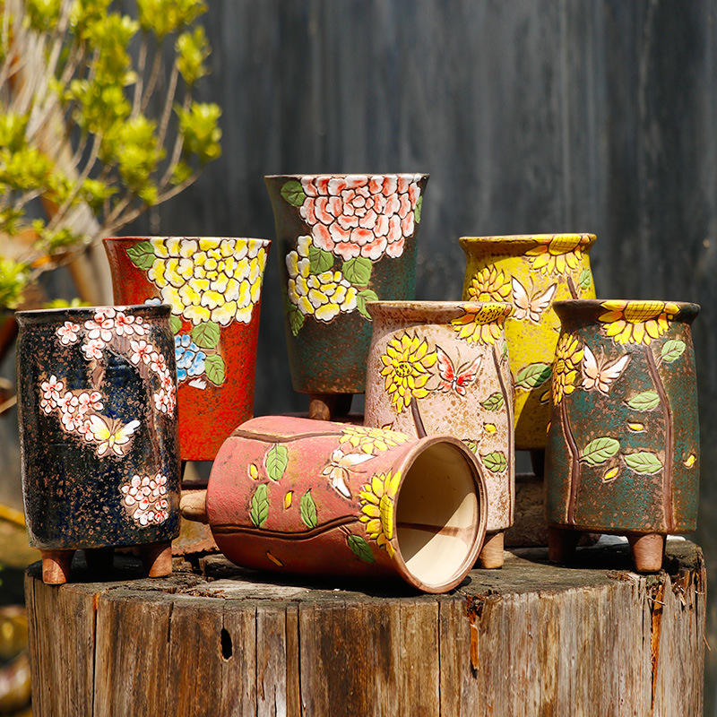 Pots de fleurs succulentes modernes en terre brute, taille Large, peint à la main, pour décoration d'extérieur, pièces