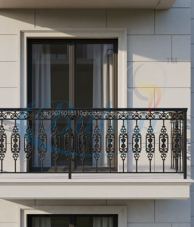Modern Frameless Cast Iron Balcony Grill Safety Railing with Rust Resistant Finish 5 Year Warranty Balaji Metals BM-56