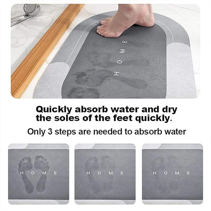 Tapis de bain rectangulaire moderne super absorbant et antidérapant, épaisseur 3-5 mm, en diatomite avec support en caoutchouc, fabriqué à la machine, lavable, imprimé
