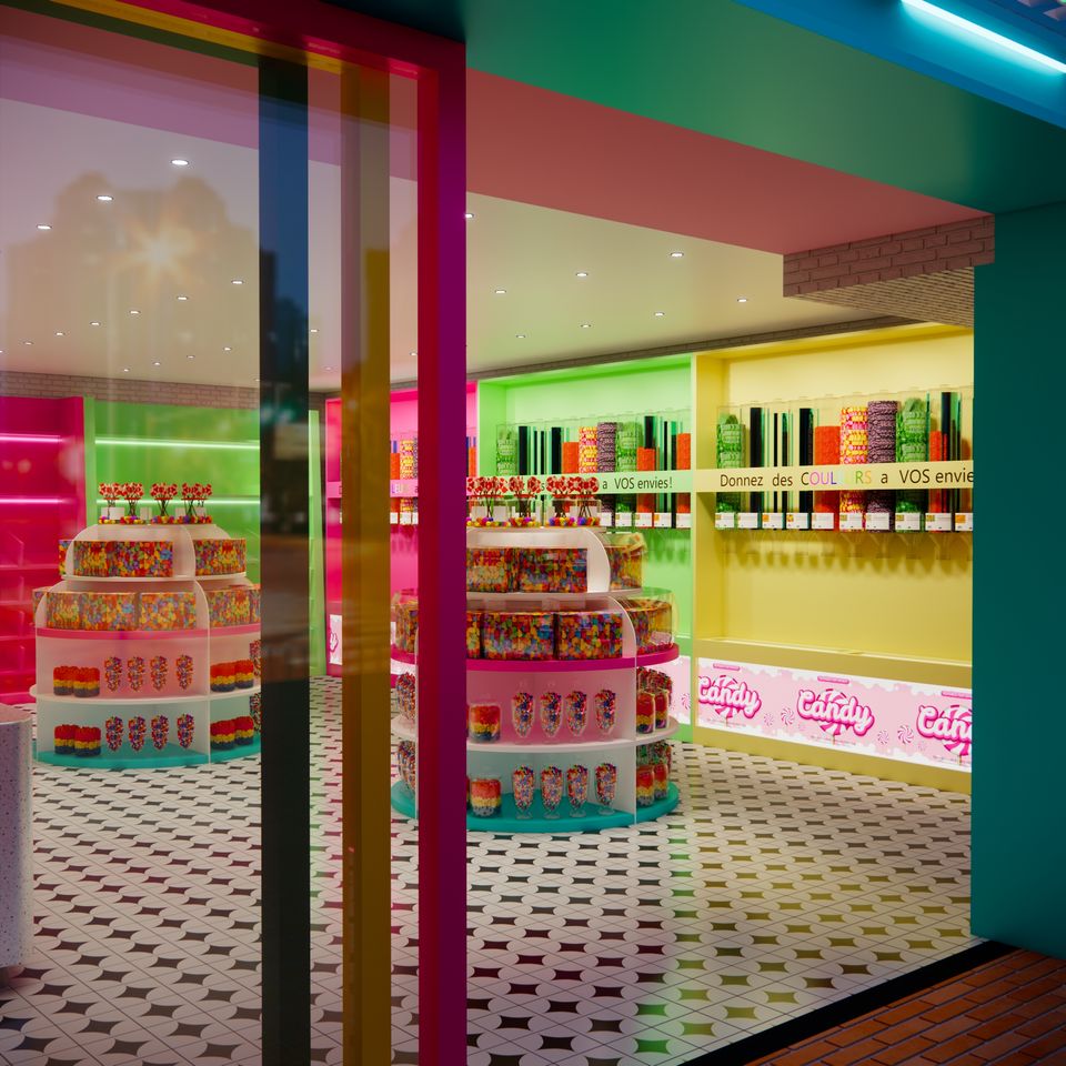 Boutique de bonbons modernes Présentoir de bonbons présentoir en acrylique Étagères murales pour vitrine de bonbons Comptoir de présentoir de bonbons