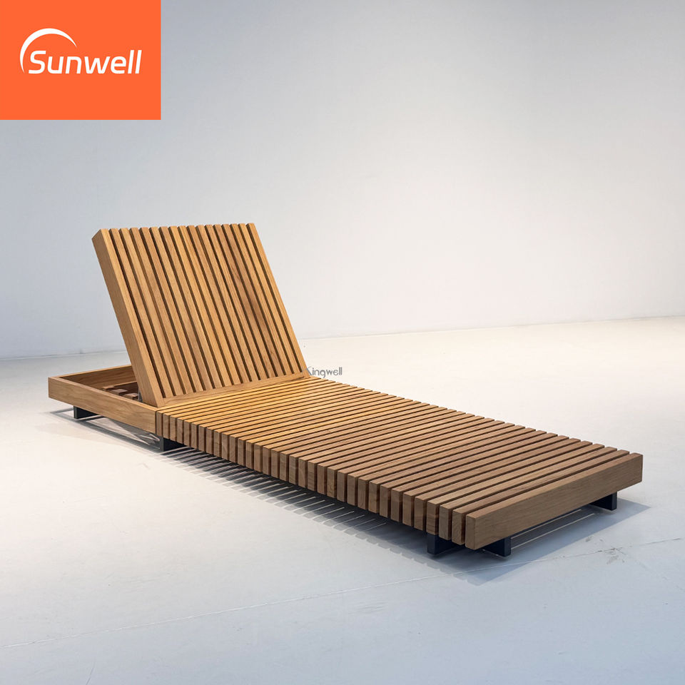 Chaise longue de piscine moderne en teck, mobilier d'extérieur avec coussin, résistant aux UV, table d'appoint pour hôtel, salon