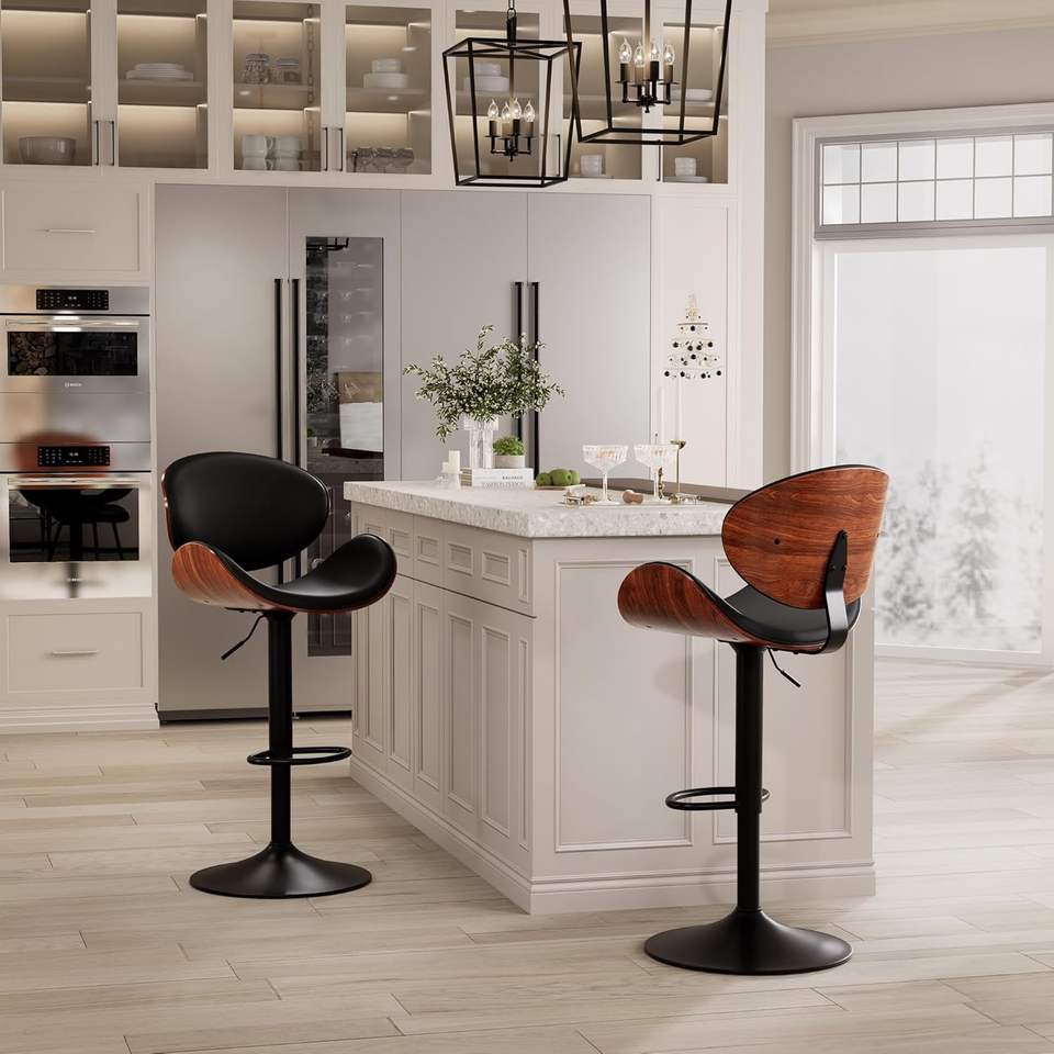 Tabouret de bar pivotant moderne en cuir PU et liège, hauteur et repose-pieds réglables pour salle à manger, extérieur, salon