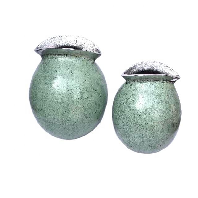 Vase à fleurs de table moderne avec finition à patine verte et bouche ovale disponible dans d'autres teintes Vase décoratif pour la maison en fonte d'aluminium