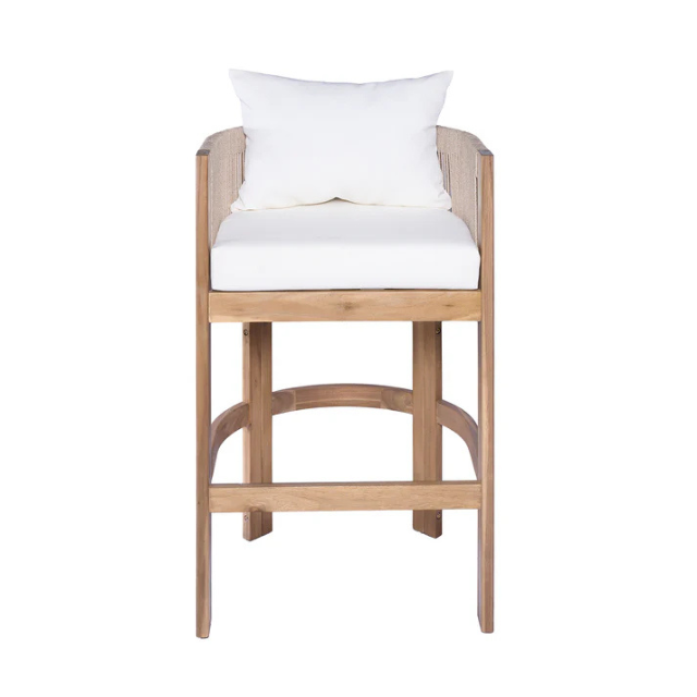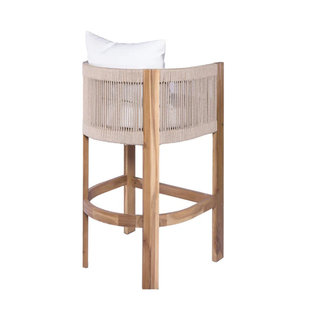 Chaise de bar en teck moderne avec siège rembourré et dossier incurvé, écologique pour appartement et usage extérieur