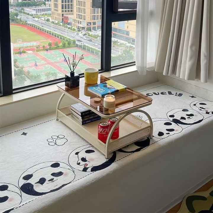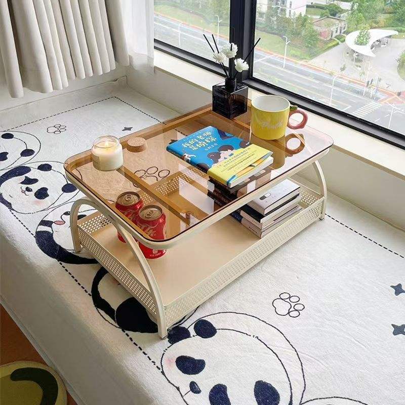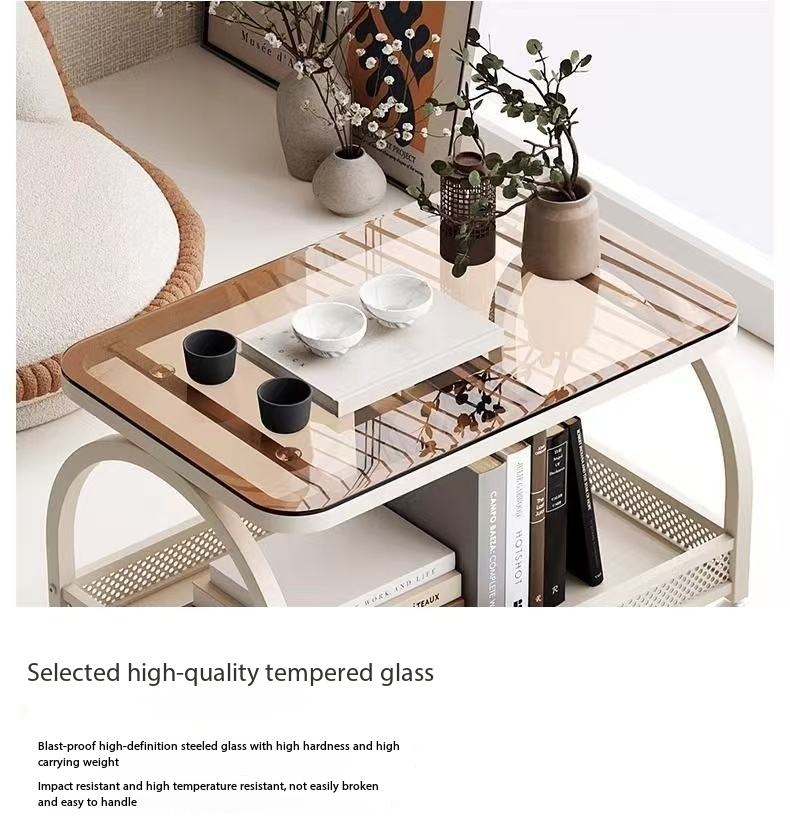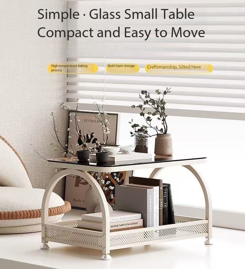 Table basse moderne en verre trempé pour baie vitrée avec étagère de rangement pour salon et balcon