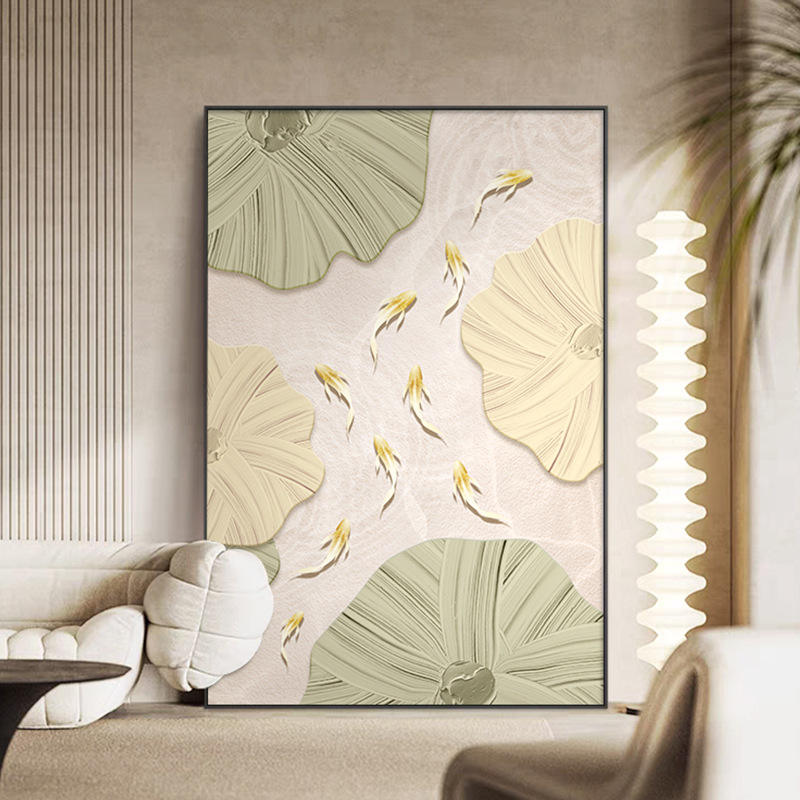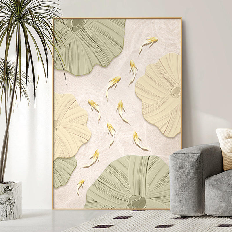 Art mural moderne texturé avec poisson koi et feuille de lotus, effet 3D, peinture sur toile, décoration Feng Shui pour salon et chambre à coucher