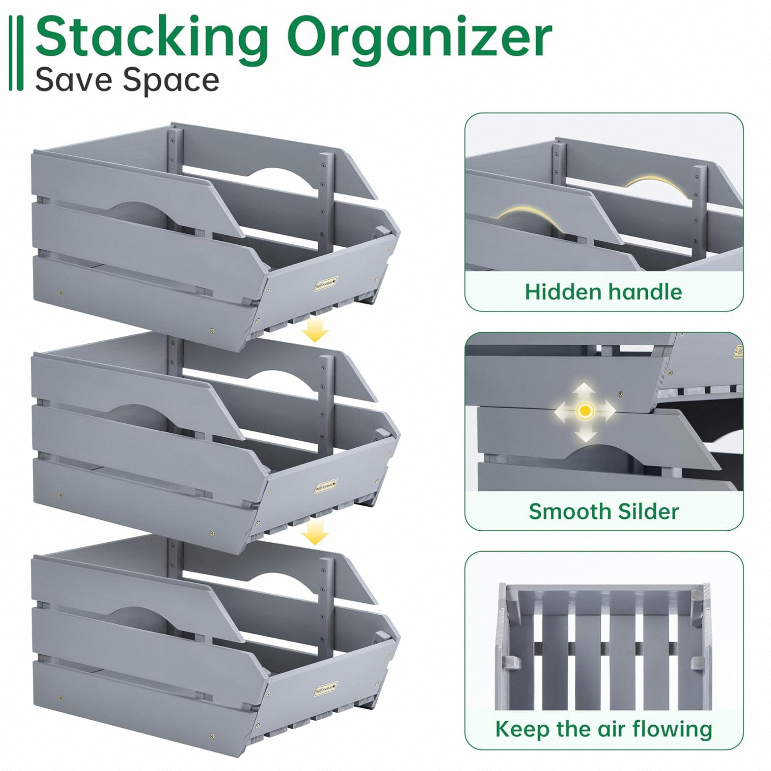 Étagère à Produits Empilable en Bois Moderne à Trois Niveaux - Rangement Écologique pour Fruits et Légumes pour l'Organisation de la Cuisine Ensemble de 3