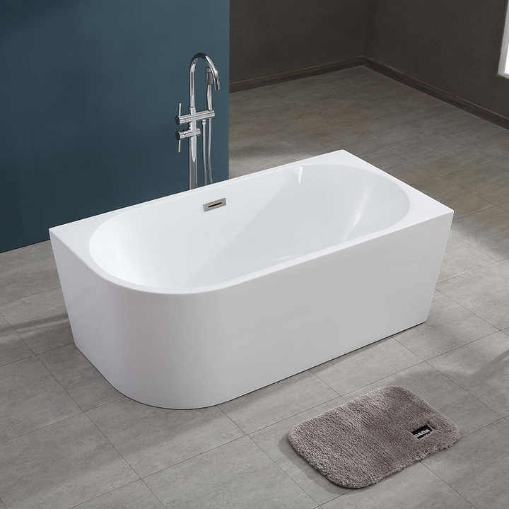 Baignoire autoportante ovale en acrylique moderne à trois angles droits et un coin arrondi, pour une immersion profonde, 1 personne, villa