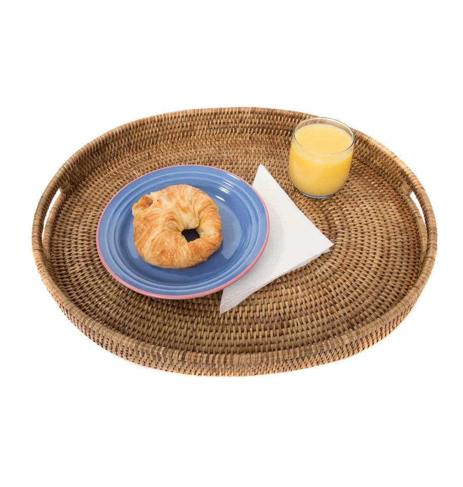 Plateau en rotin traditionnel moderne avec poignée Organisateur de cuisine Forme ronde Piscine Plateau flottant Prix supérieur