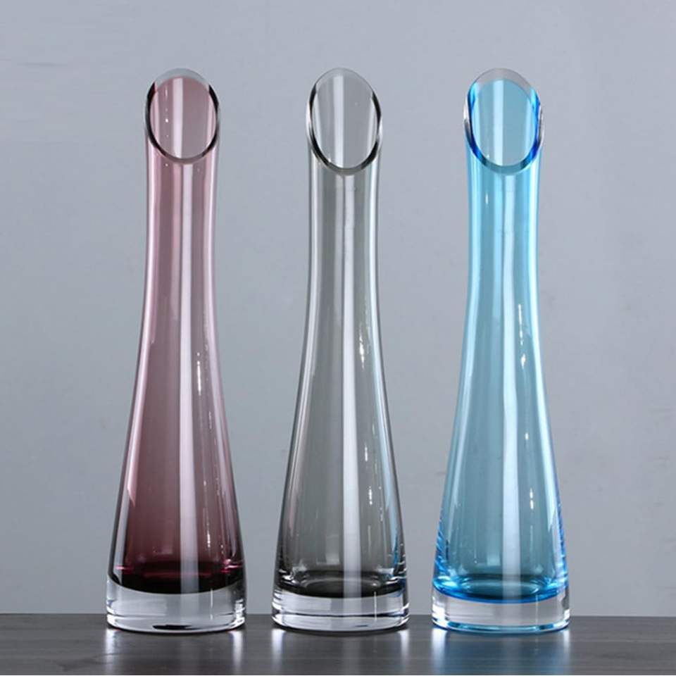 Modern Transparent Blique Mouth Single Bud Hand-Blew Art Glass Flower Vase for Wedding Table Decorative Use Factory Wholesale