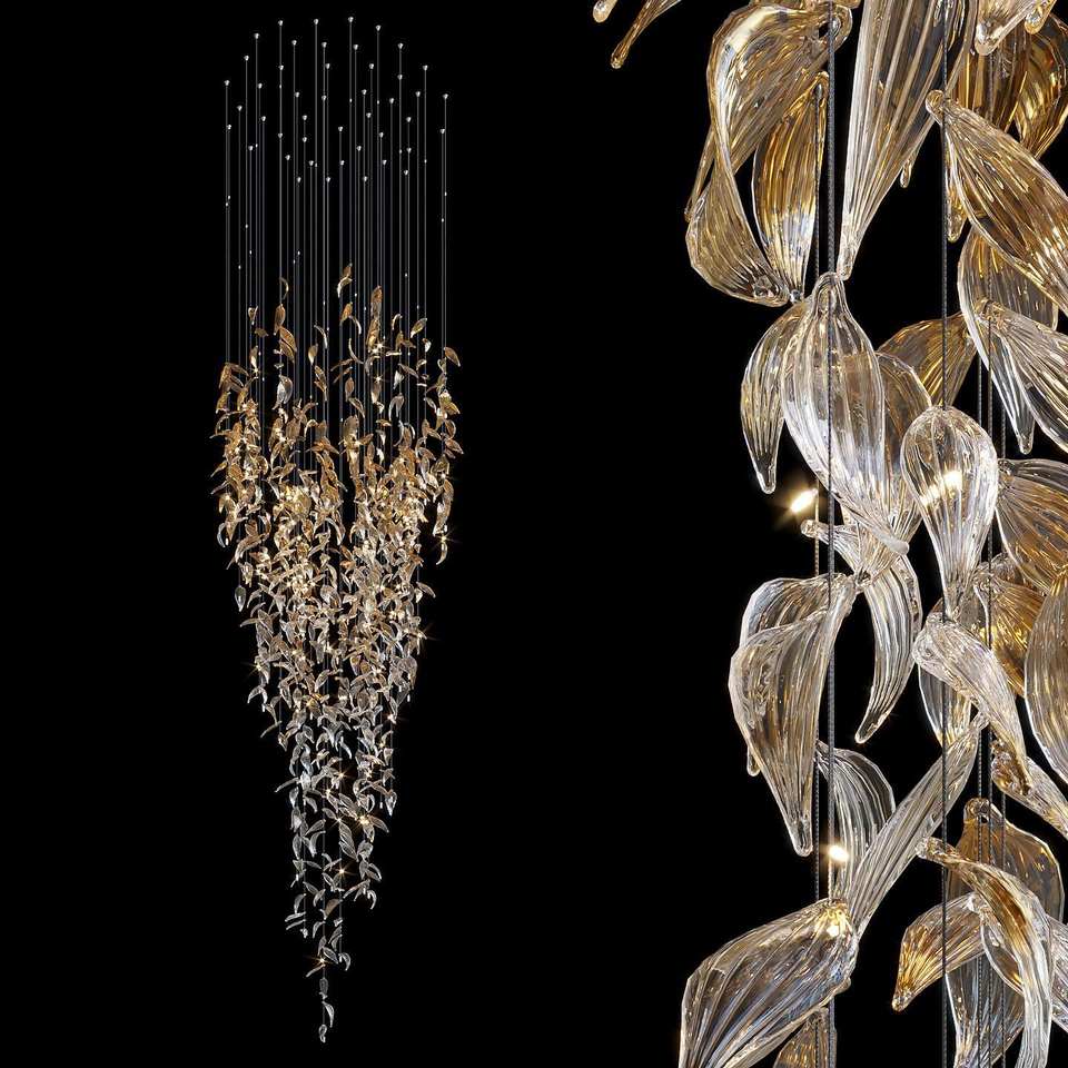 Lustre moderne transparent et de couleur ambre pour hall d'hôtel, lustre suspendu LED de luxe