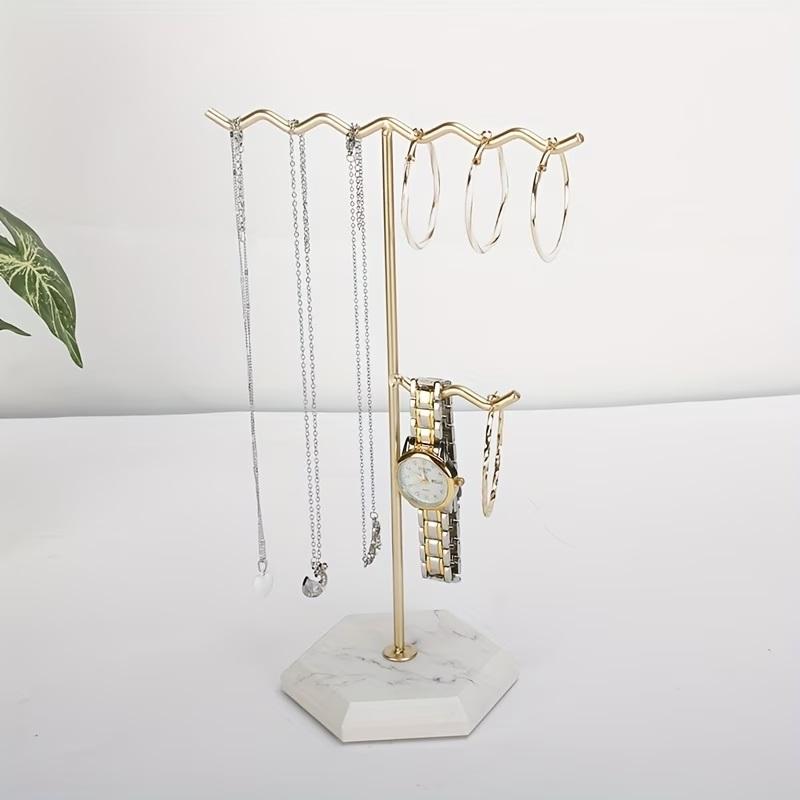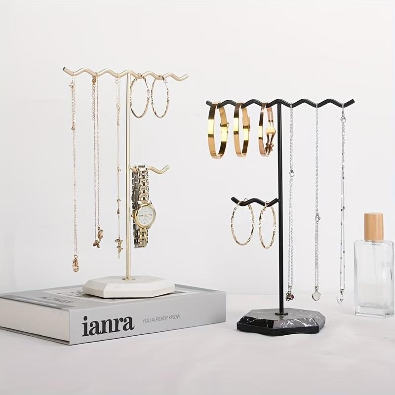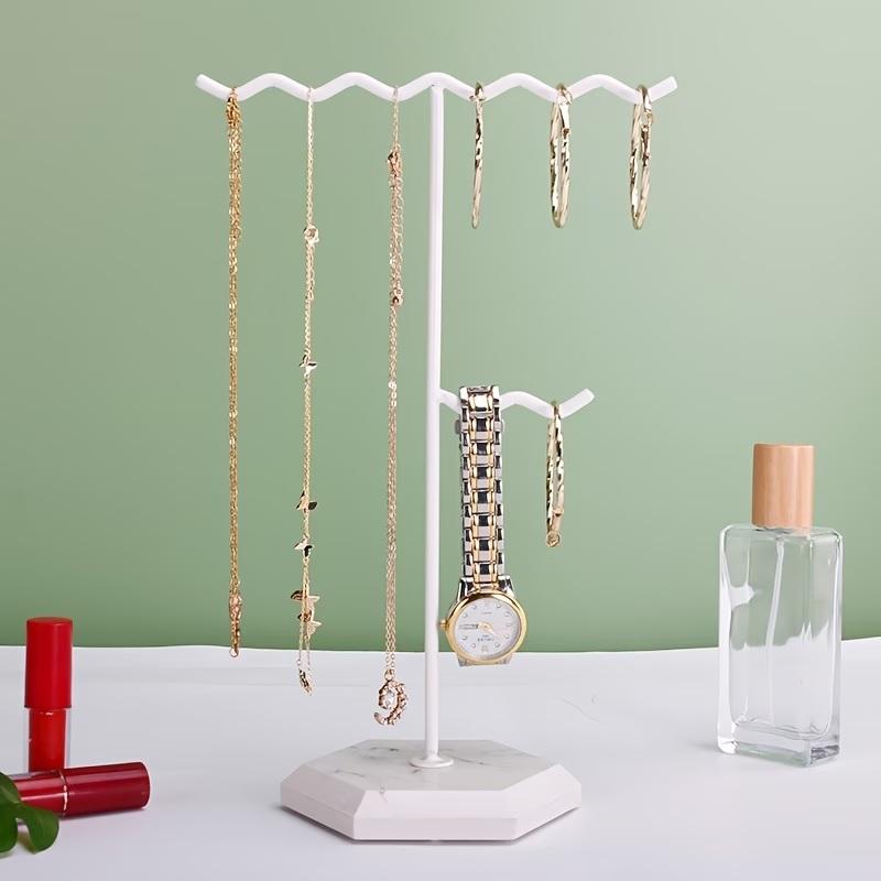 Présentoir à bijoux moderne style arbre avec crochets ondulés, support pour montres, organisateur de colliers anti-emmêlement, base stable, présentoir de vanité élégant