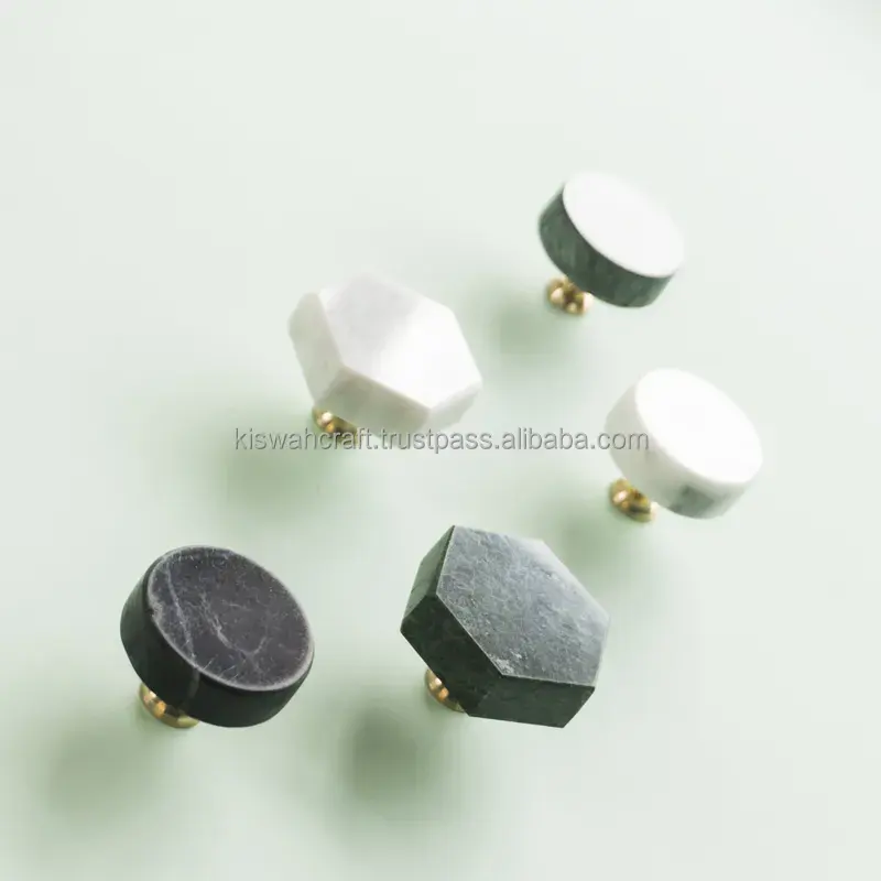 Bouton hexagone de conception moderne à la mode poignée de placard de cuisine tire tiroir de quincaillerie d'armoire en marbre et boutons en résine