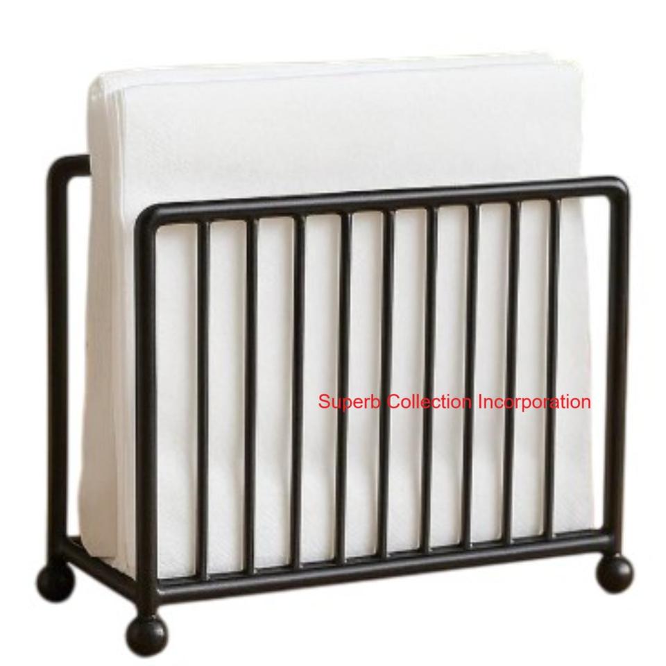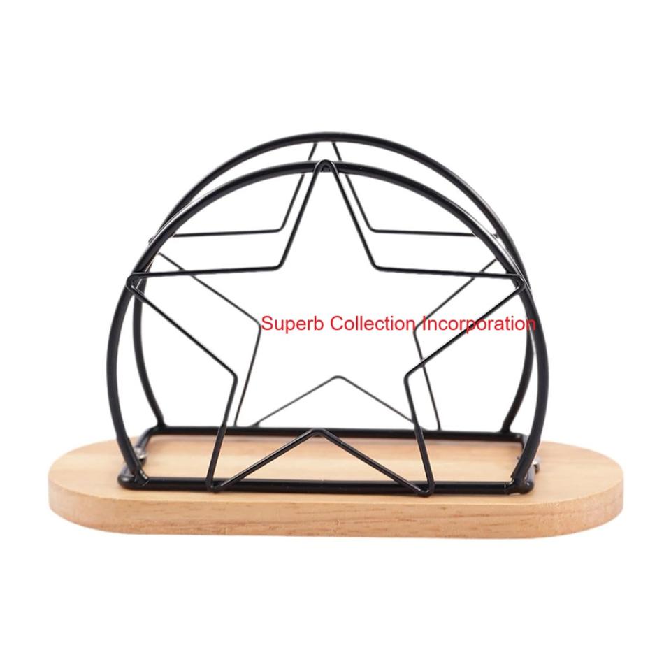 Porte-serviettes moderne en fil métallique noir avec base en bois pour la décoration de la cuisine et de la table à manger