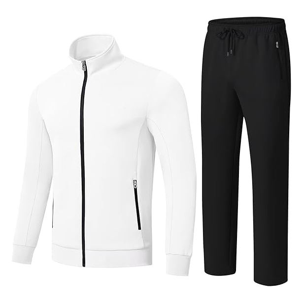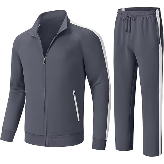 Ensemble de survêtement moderne deux pièces pour homme en polyester, col montant, fermeture éclair, veste et pantalon de survêtement, vêtements de sport