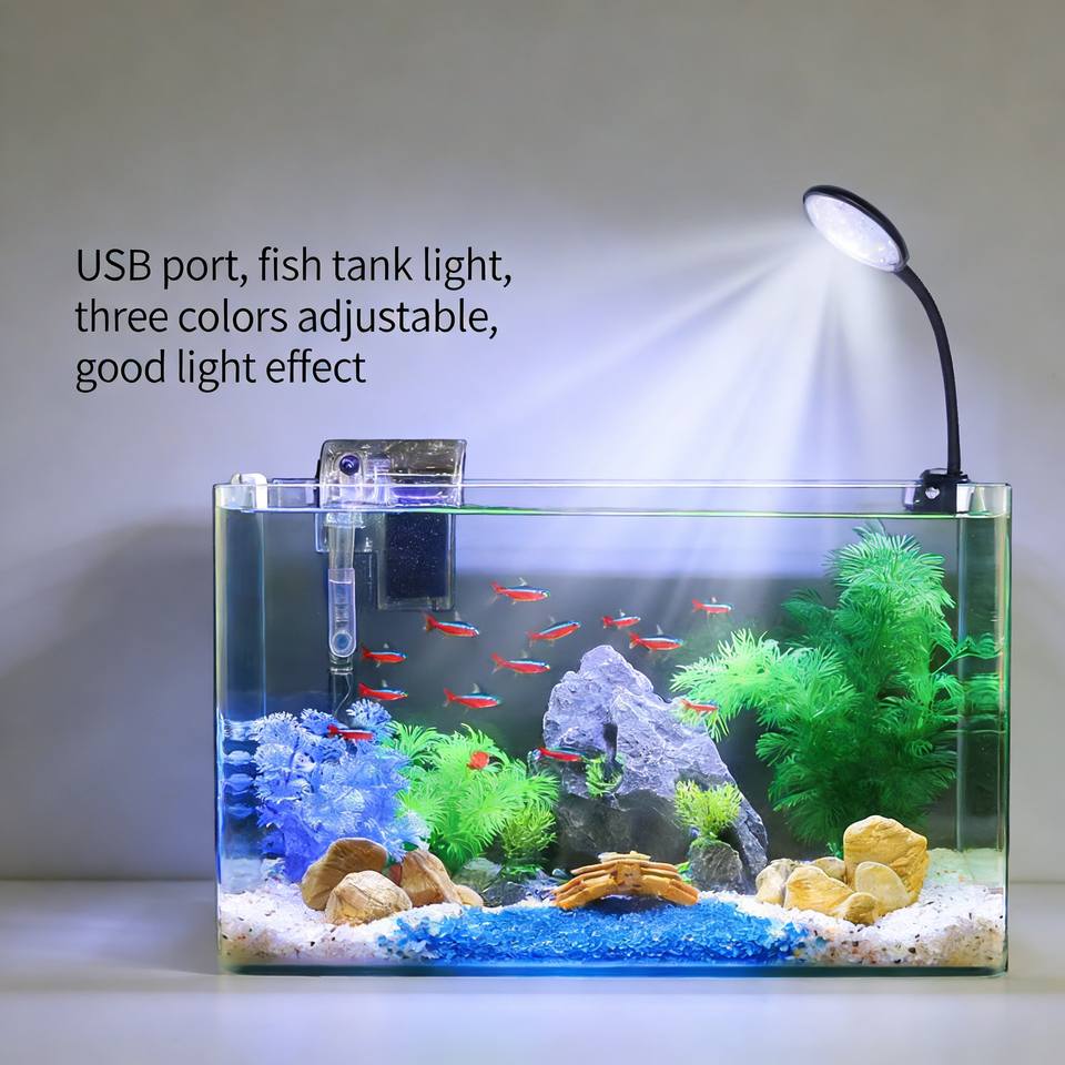Lampe LED à pince pour aquarium, moderne, alimentée par USB, à spectre complet, 7W, à intensité variable, veilleuse de salon pour l'observation des poissons Betta